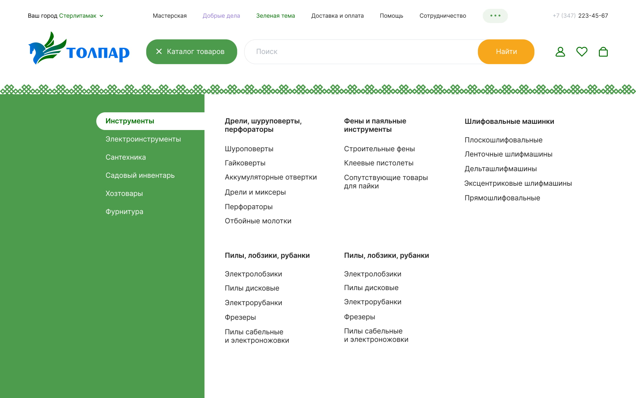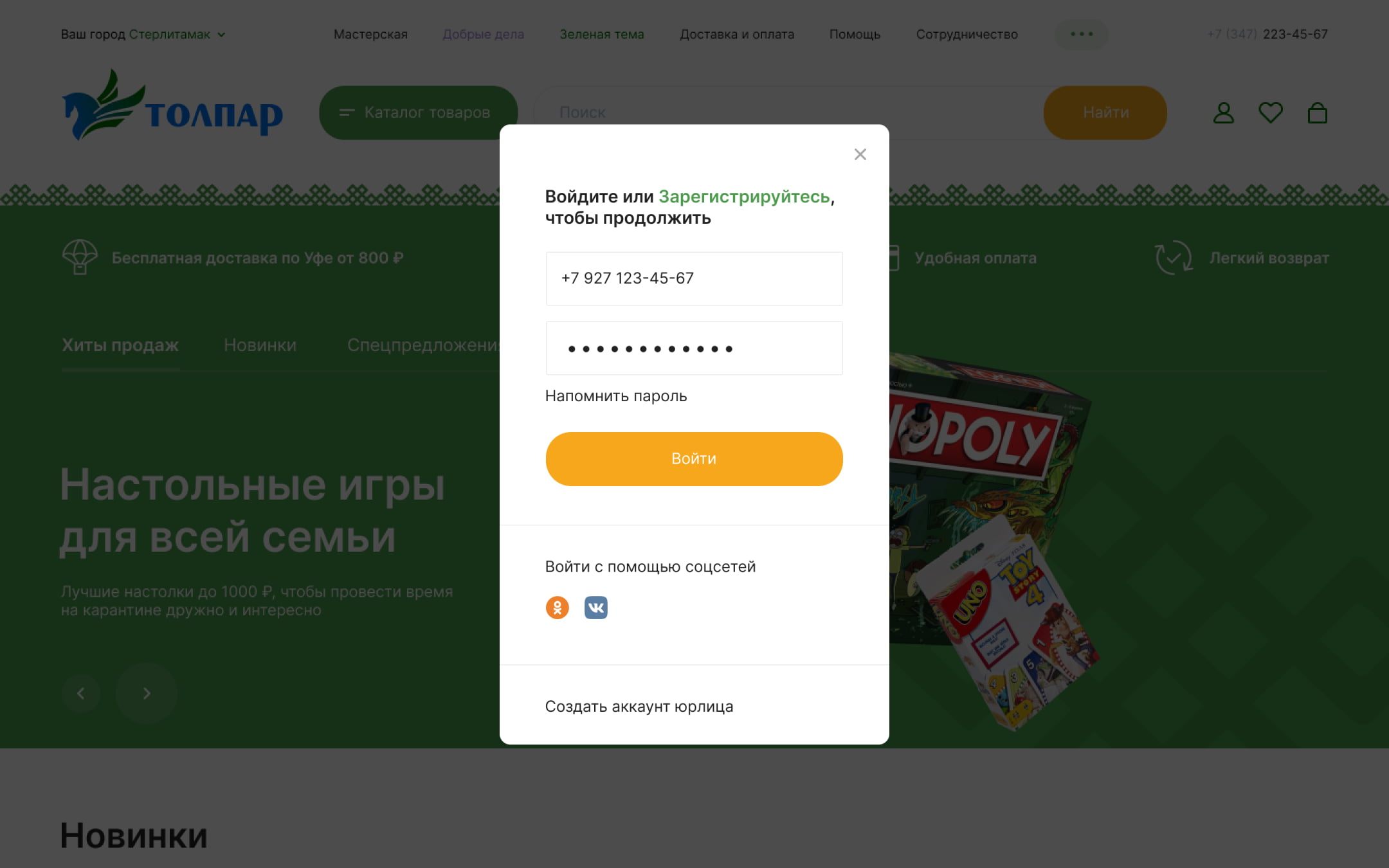 В качестве организации бонусной системы на сайте изначально планировалось использовать интеграцию с ресурсом Бонус +, но изменили решение в пользу своей собственной системы поощрения клиента, так была разработана бонусная система в личном кабинете клиента. Она включает в себе бонусные уровни, критерием достижения каждого бонусного уровня является сумма, на которую заказал клиент на сайте товаров. Каждый новый бонусный уровень дает процент скидки на весь заказ по уровню, так же существует скидка на сам товар. Начисление и списание бонусов происходит по событию оформления заказа, при возврате товаров, потраченные на этот товар бонусы возвращаются на бонусный счет клиента. ![]() Так как проект зарождается на региональном уровне и по мере расширения зоны охвата доставки товаров клиента выйдет на федеральный уровень, отличительной особенностью является использования персонажа на сайте, представленного в виде башкирского национального героя – Батыра. Данный персонаж сопровождает каждого покупателя по сайту от главной странице до страницы успешного заказа товара. ![]() ![]() ![]() ![]() Сайт Толпар.ру является мощным, современным, функциональным интернет-магазином с большим ассортиментным рядом, на котором, выставлены на продажу сотни товаров от швейных иголок до автомобильных запчастей и мебели. Здесь каждый покупатель сможет найти себе все что угодно по доступным ценам, а система бонусов и скидок позволит совершать все новые и новые покупки в данном магазине. ![]() |