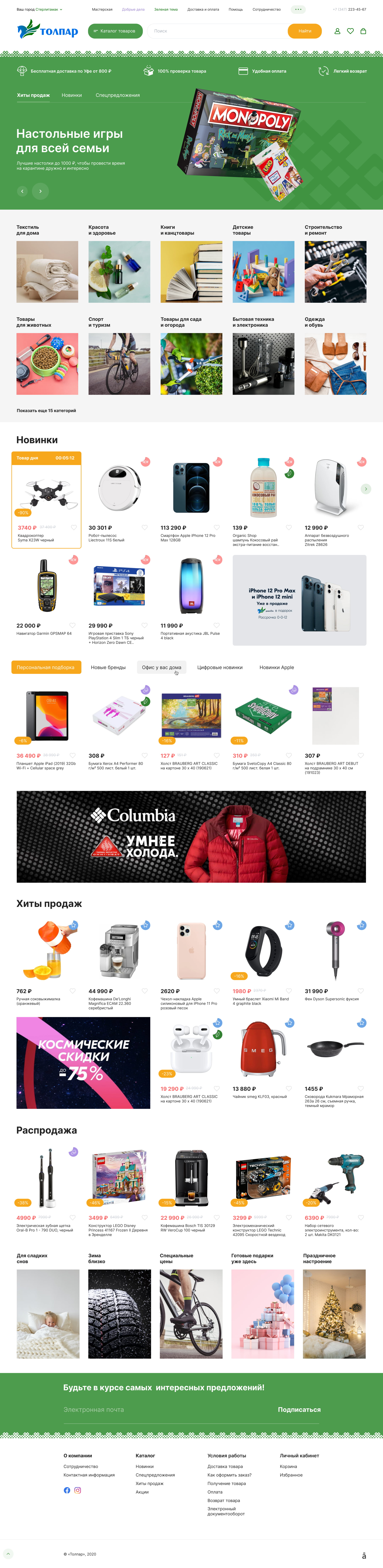 Интернет-магазин «Толпар»Интернет магазин «Толпар» представляет собой интернет-ресурс на котором в ассортимент выставляется более 500 тыс. товаров от различных поставщиков. ЗадачаСоздание крупного интернет-магазина с ассортиментом от 250 тыс. до 2,5 товаром от различных поставщиков, с внедрением интеграции bitforce, Бонус +,1С и интернет-эквайринга от Сбербанк. РешениеРазработали достаточно сложный интернет-ресурс, предствляющий собой интернет-магазин с большим ассортиментом. Достоинствами данного сайта являются помимо основного функционала каждого сайта таких как быстрый и удобный поиск, раздел избранное, фильтр каталога, так и новые необычные решения такие как интеграция с системой bitforce, собственная бонусная система.