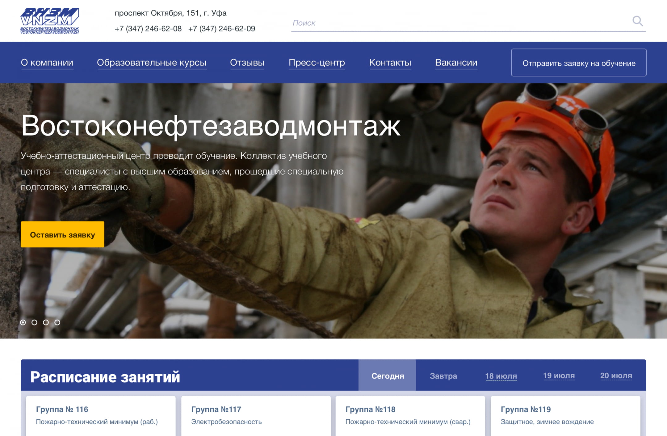 Training and certification center «VNZM»Training and certification center "VNZM" provides services in the field of additional education. Provide safe working conditions and increased production efficiency. TuskTo develop a website for the training and certification center "VNZM"