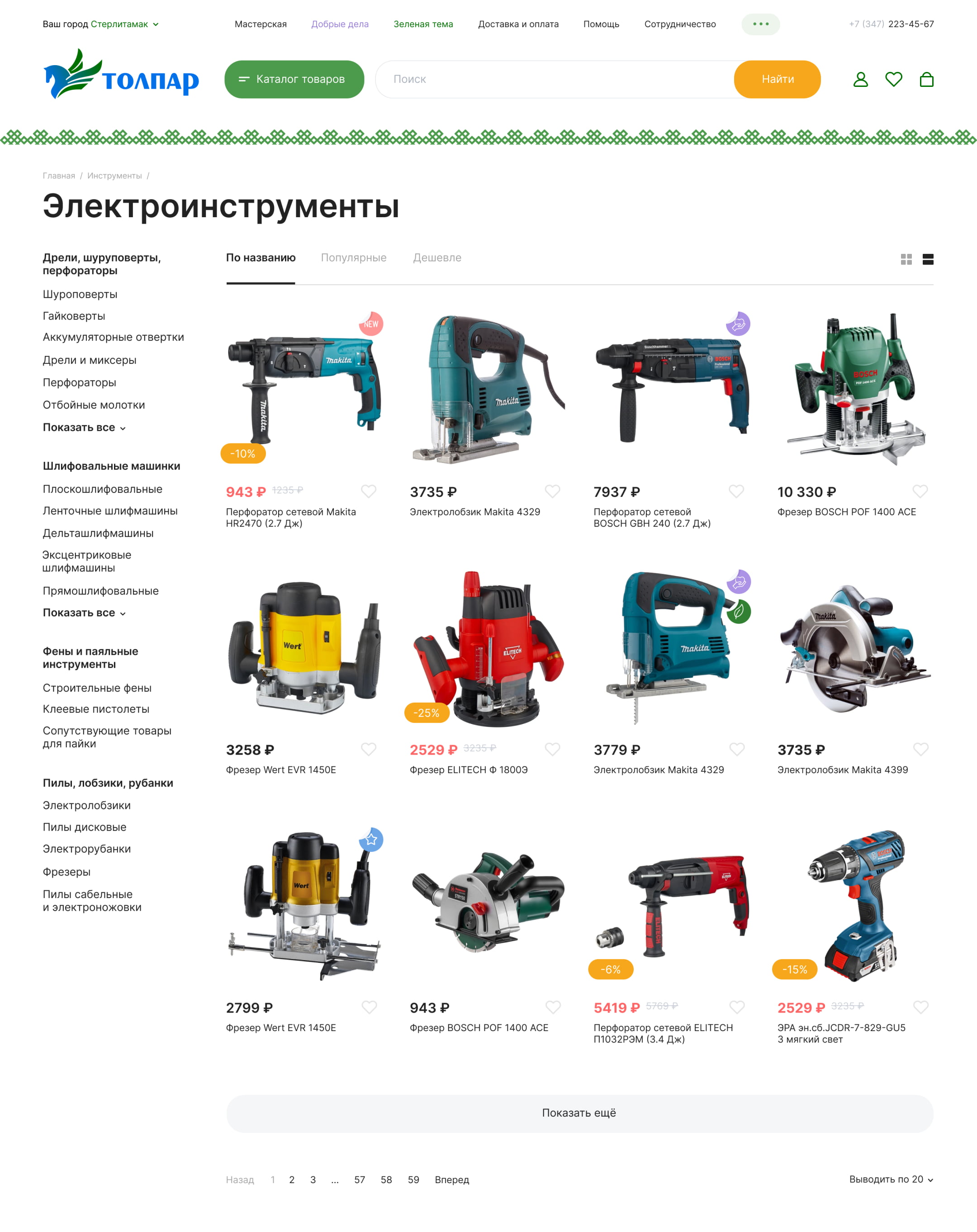 Интернет-магазин «Толпар»Интернет магазин «Толпар» представляет собой интернет-ресурс на котором в ассортимент выставляется более 500 тыс. товаров от различных поставщиков. ЗадачаСоздание крупного интернет-магазина с ассортиментом от 250 тыс. до 2,5 товаром от различных поставщиков, с внедрением интеграции bitforce, Бонус +,1С и интернет-эквайринга от Сбербанк. РешениеРазработали достаточно сложный интернет-ресурс, предствляющий собой интернет-магазин с большим ассортиментом. Достоинствами данного сайта являются помимо основного функционала каждого сайта таких как быстрый и удобный поиск, раздел избранное, фильтр каталога, так и новые необычные решения такие как интеграция с системой bitforce, собственная бонусная система.